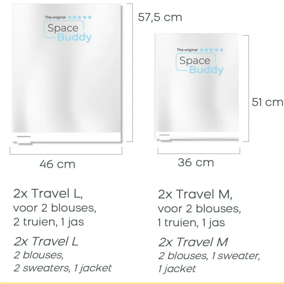 Met de Vacuüm opbergzakken van Space Buddy heeft u tot wel 3 keer meer ruimte in uw koffer. Tegelijkertijd zijn uw spullen beschermd tegen stof, vocht en nare geurtjes.