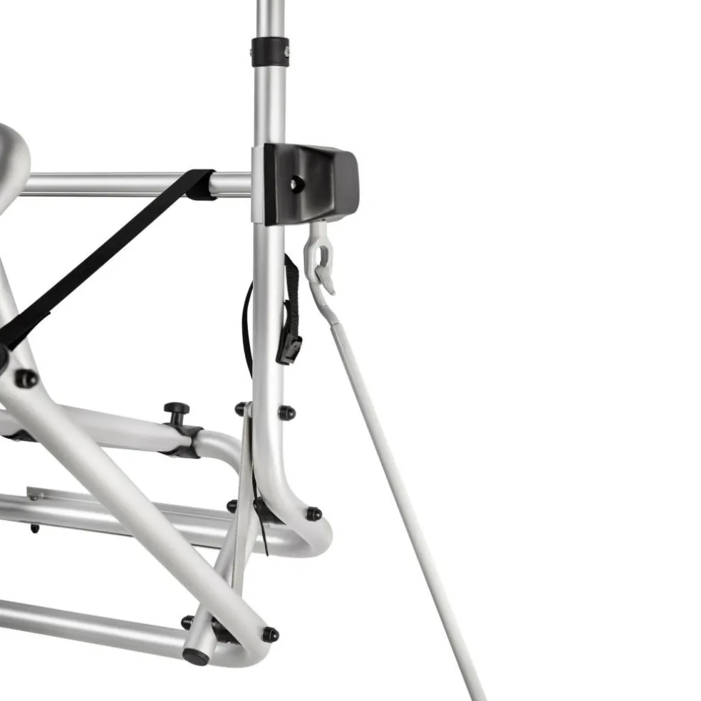 Met een zwengel kan de gehele drager handmatig omhoog en omlaag versteld worden. Zo kan de fietsendrager een hoogte van 70 centimeter overbruggen, hierdoor kunnen uw fietsen eenvoudiger op het platform geplaatst worden. Daarbij zorgen de geïntegreerde veiligheidsriemen voor een stabiele en stevige bevestiging van uw tweewieler. De afstandshouders zijn bovendien vergrendelbaar, waardoor uw fiets veilig op slot staat.