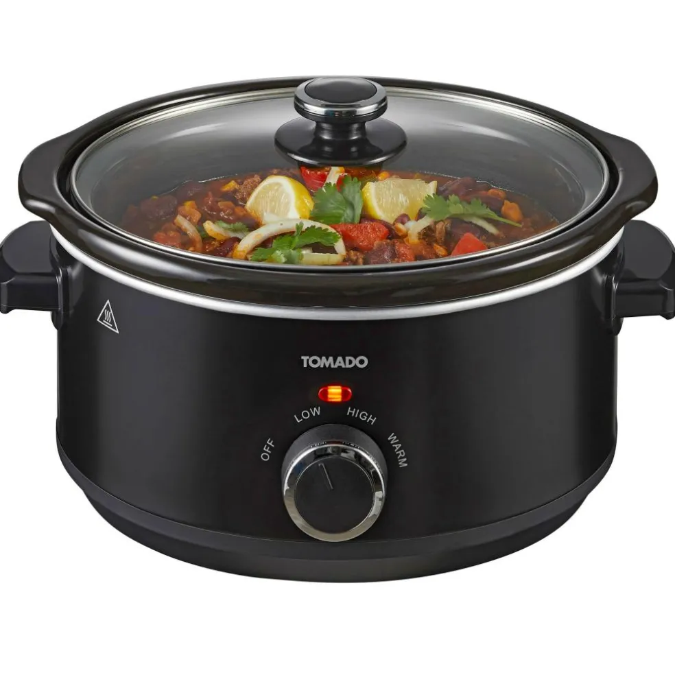 De Tomado TSC3501B slowcooker kan een breed scala aan gerechten maken. De slowcooker heeft 3 warmte instellingen en is makkelijk te bedienen met de draaiknop. U hoeft de deksel niet op te tillen om te kunnen zien hoe ver uw eten bereidt is, waardoor u geen onnodige warmte verliest. Verder is de slowcooker voorzien van een warmhoudfunctie. De keramische pan is uitneembaar en eenvoudig te reinigen.