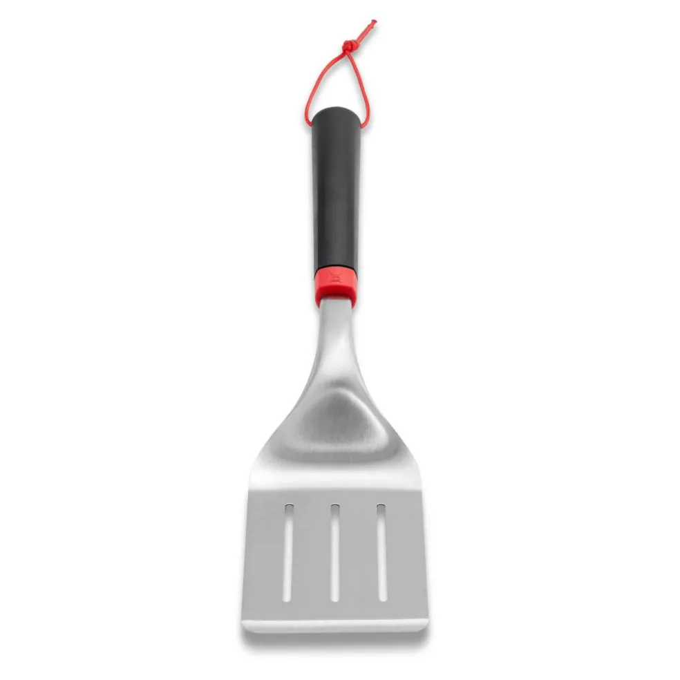 Deze Weber barbecuespatel is ideaal voor het probleemloos omdraaien van burgers. De spatel is lang genoeg om uw hand ver weg te houden van de warmte.