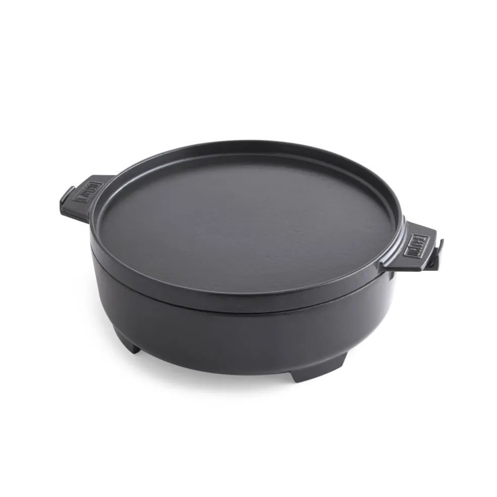 De Weber Gourmet BBQ Dutch Oven Duo is een veelzijdig kookgerei dat voor zeer veel mogelijkheden zorgt op uw barbecue. Deze Weber Dutch Oven is gemaakt van gietijzer en heeft een inhoud van 6,8 liter. Hierin kunt u diverse maaltijden bereiden, van brood tot soep en zelfs hele stoofschotels. De deksel van deze pot heeft een dubbele functie en kan ook gebruikt worden als platte bakplaat, zo kan de gehele dutch oven dus multifunctioneel gebruikt worden. Doordat er een coating over het gietijzer is geplaatst is de pot zeer gemakkelijk schoon te maken.