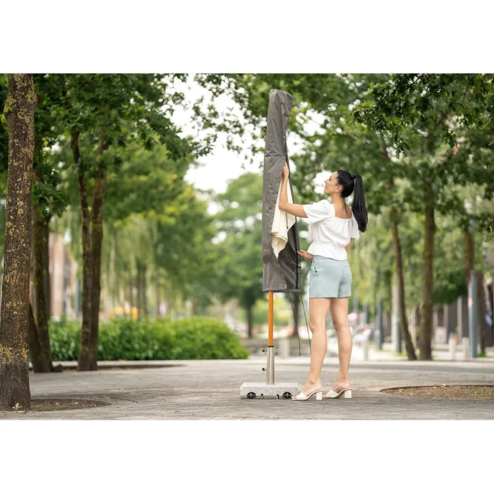 De Winza Outdoor Covers Premium parasolhoes is door de rits en opzetpin eenvoudig om uw parasol te bevestigen en beschermt deze tegen weersinvloeden. Deze Outdoor Covers parasolhoes is gemaakt van duurzaam textiel en volledig waterdicht. Wij adviseren u om uw parasol af te dekken wanneer deze droog is in verband met vochtschade. Op die manier kunt u nog langer genieten van uw kostbare parasol.