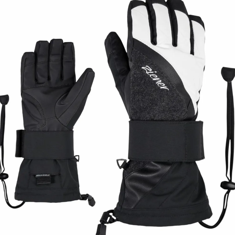 De MILANA AS handschoenen van Ziener zijn uw ideale metgezel voor uw snowboard- en ski avonturen. Deze handschoenen zijn voorzien van een handige polsband, trekkoord en riemsluiting voor een perfecte pasvorm. De extra bescherming op de binnenpols zorgt voor ultieme veiligheid, terwijl de foam voering op de handpalm en textuur op de achterkant zorgen voor een optimale grip. De ingebouwde waterdichte en winddichte Aquashield-membraan zorgt ervoor dat uw handen comfortabel blijven ongeacht de weersomstandigheden.