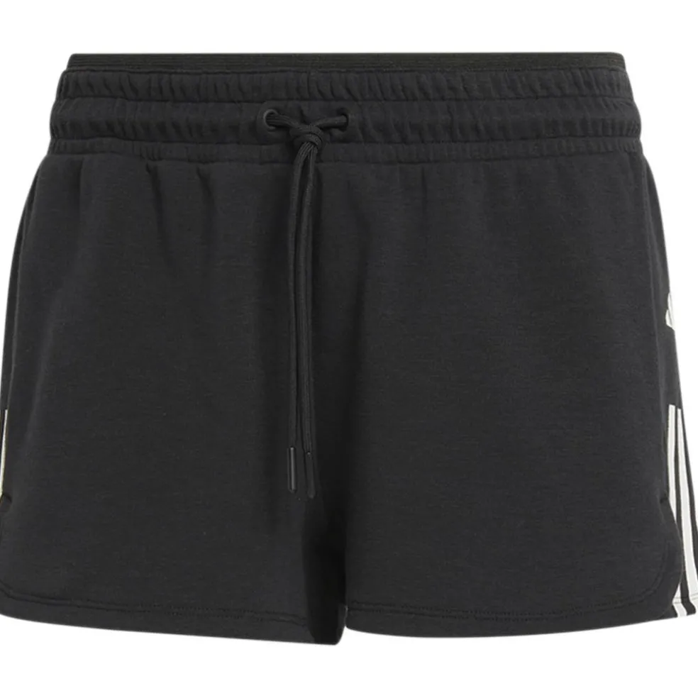 De adidas Train Essentials Cotton 3-Stripes short voor dames geeft alle bewegingsvrijheid die u nodig heeft tijdens het trainen. De lichte losse short zit comfortabel door de elastische tailleband met trekkoord.