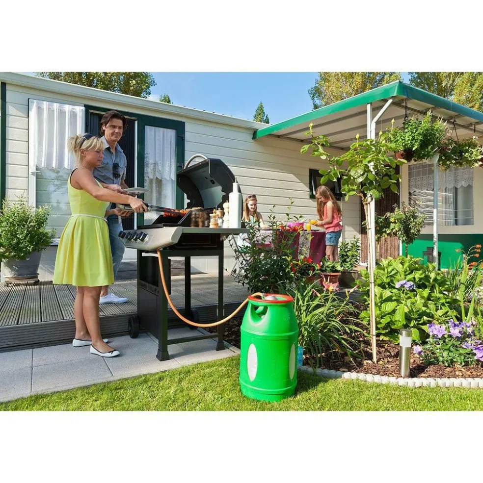 De Calypso gasfles is zeer eenvoudig in gebruik dankzij de handige en veilige snelkoppeling. Door deze veilige koppeling wordt de zelfsluitende fleskraan goed afgesloten en kan deze niet meer opengaan na afkoppelen van uw regelaar of adapter. Ook is er voor het aan- en afsluiten geen gereedschap vereist. Ideaal voor het gebruik bij bijvoorbeeld de buitenkeuken, terrasverwarmer of de verwarming van de caravan. U beschikt zo over één gasfles die u wisselt tussen de verschillende gebruikstoestellen.