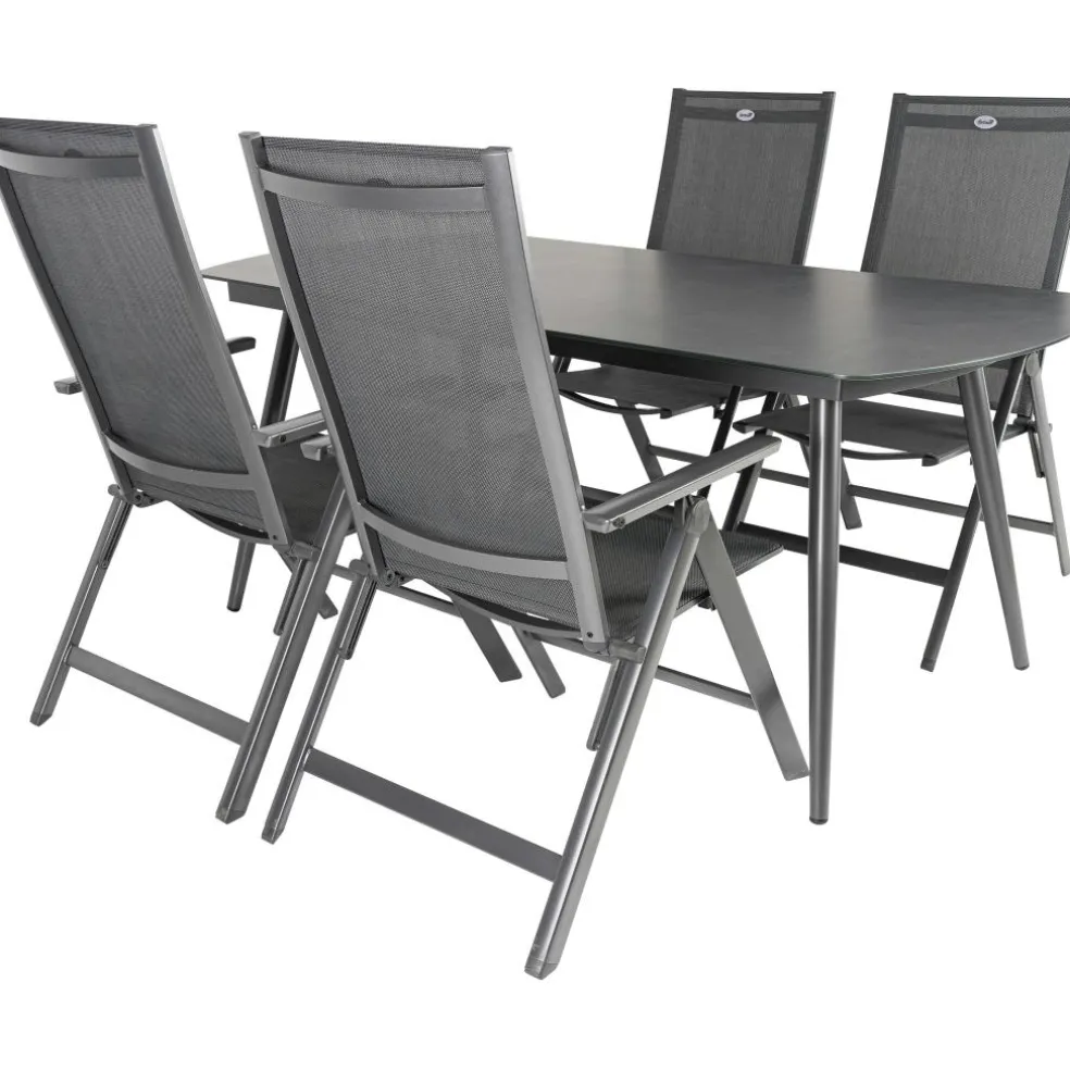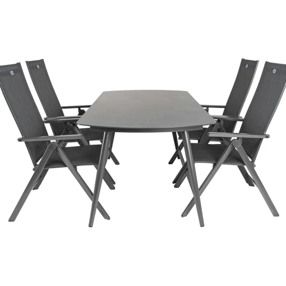 De Bardani Olivia 180 x 100 cm Aruba 4 tuinset bestaat uit een rechthoekige tafel en 5 verstelbare tuinstoelen. Deze set is gemaakt van hoogwaardige materialen die onderhoudsarm zijn en een lange levensduur bieden, waardoor u langdurig kunt genieten van uw tuinset. De stoelen en tafel hebben beiden een frame van lichtgewicht aluminium en het tafelblad is gemaakt van glas. De tuinstoelen zijn makkelijk inklapbaar en verstelbaar.