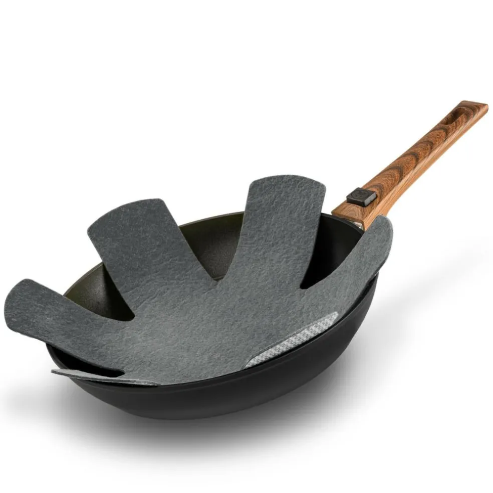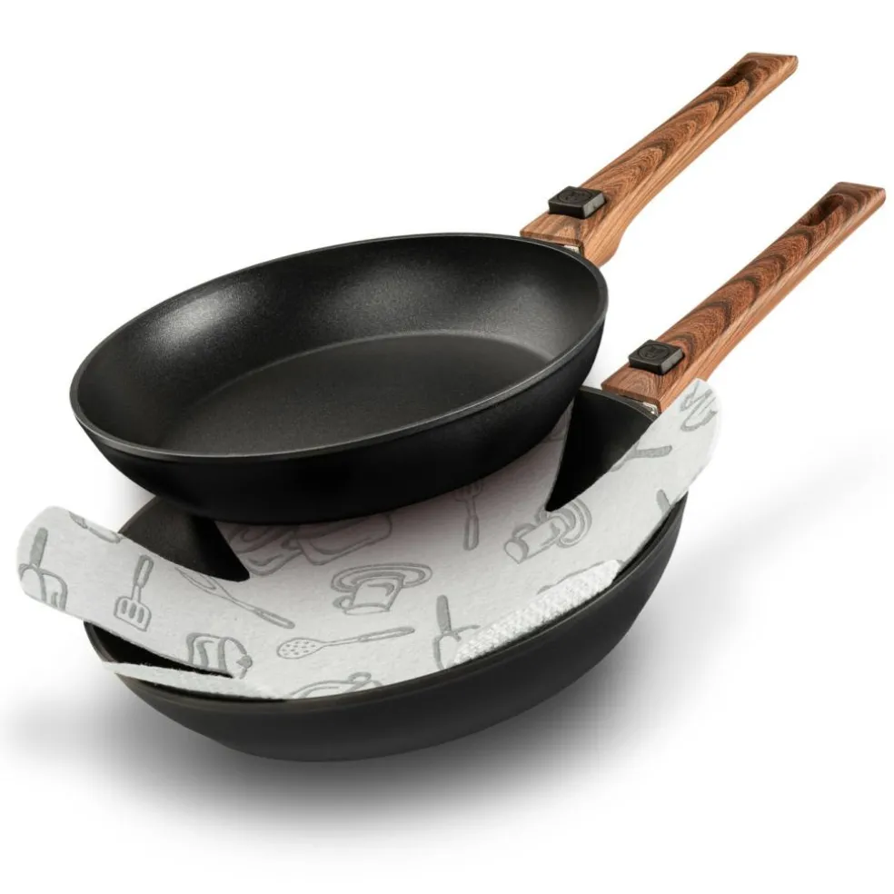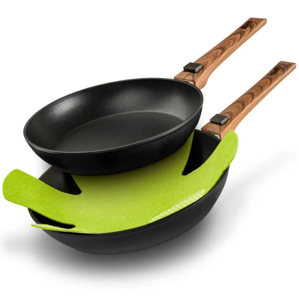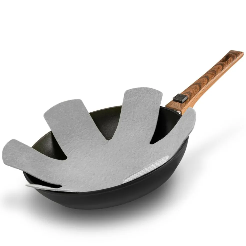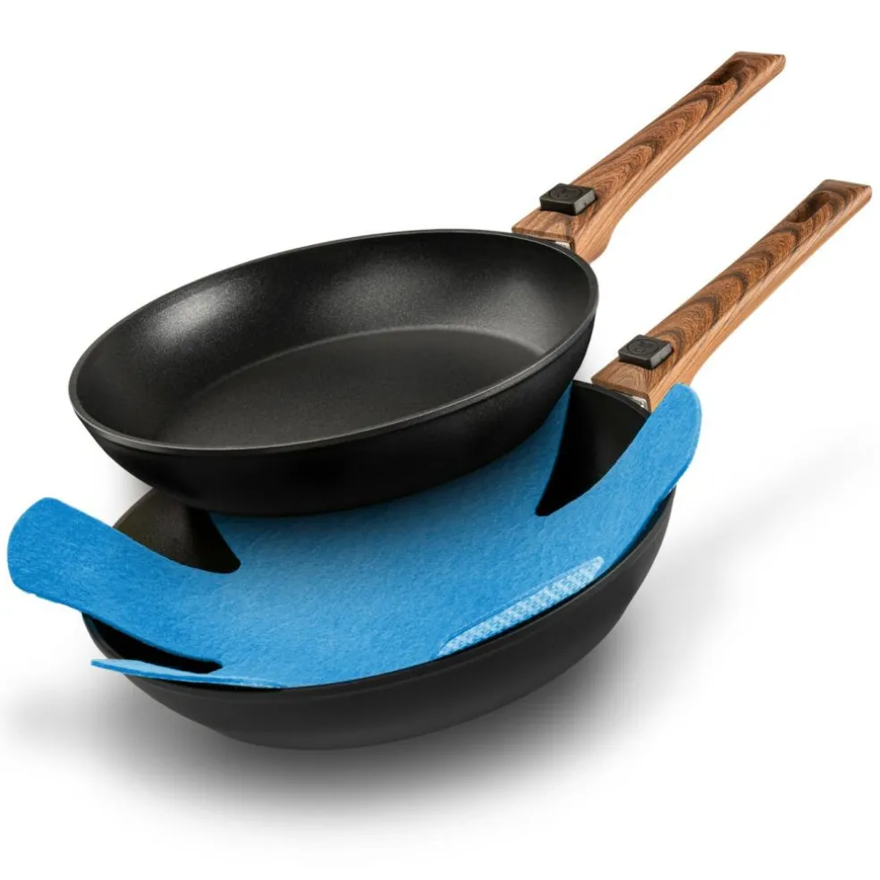 Deze Bardani Panbeschermers bestaan uit een set van drie stuks. Deze panbeschermers van Bardani zijn universeel en hebben een afmeting van 5 x 8 centimeter. De panbeschermers plaatst u tussen uw pannen en zo worden beschadigingen voorkomen.