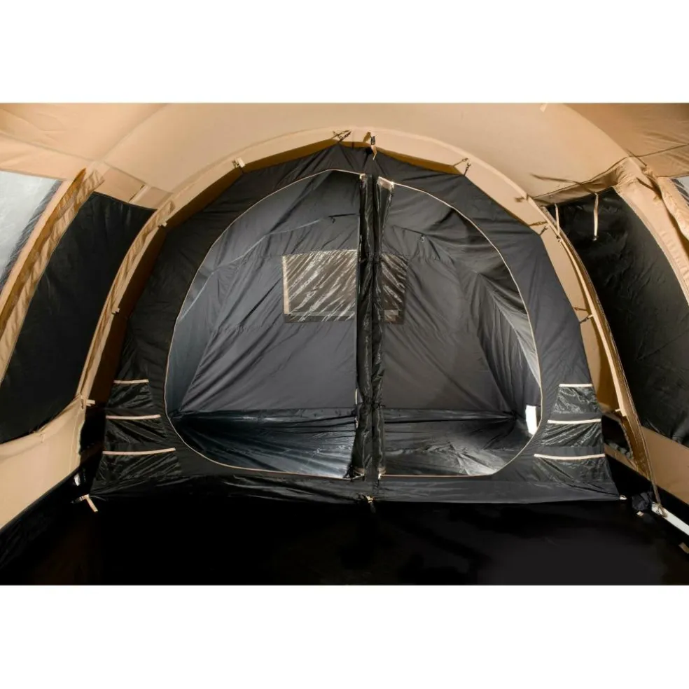 De indeling van deze Bardani tunneltent geeft rust en privacy in de slaapvertrekken, terwijl de leefruimte centraal en praktisch blijft voor samen eten, spelletjes of een regenbui uitzitten.