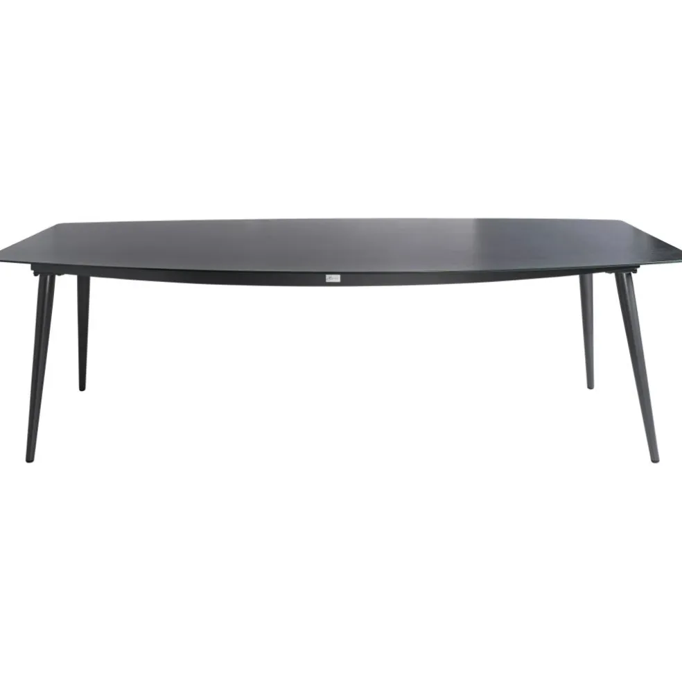 De royale afmetingen van deze tafel van Bardani zorgen voor genoeg ruimte. Het tafelblad is gemaakt van keramiek op glas en het onderstel van aluminium, wat een moderne, rustige uitstraling creëert. Ook zijn deze materialen weersbestendig en daardoor onderhoudsvriendelijk.