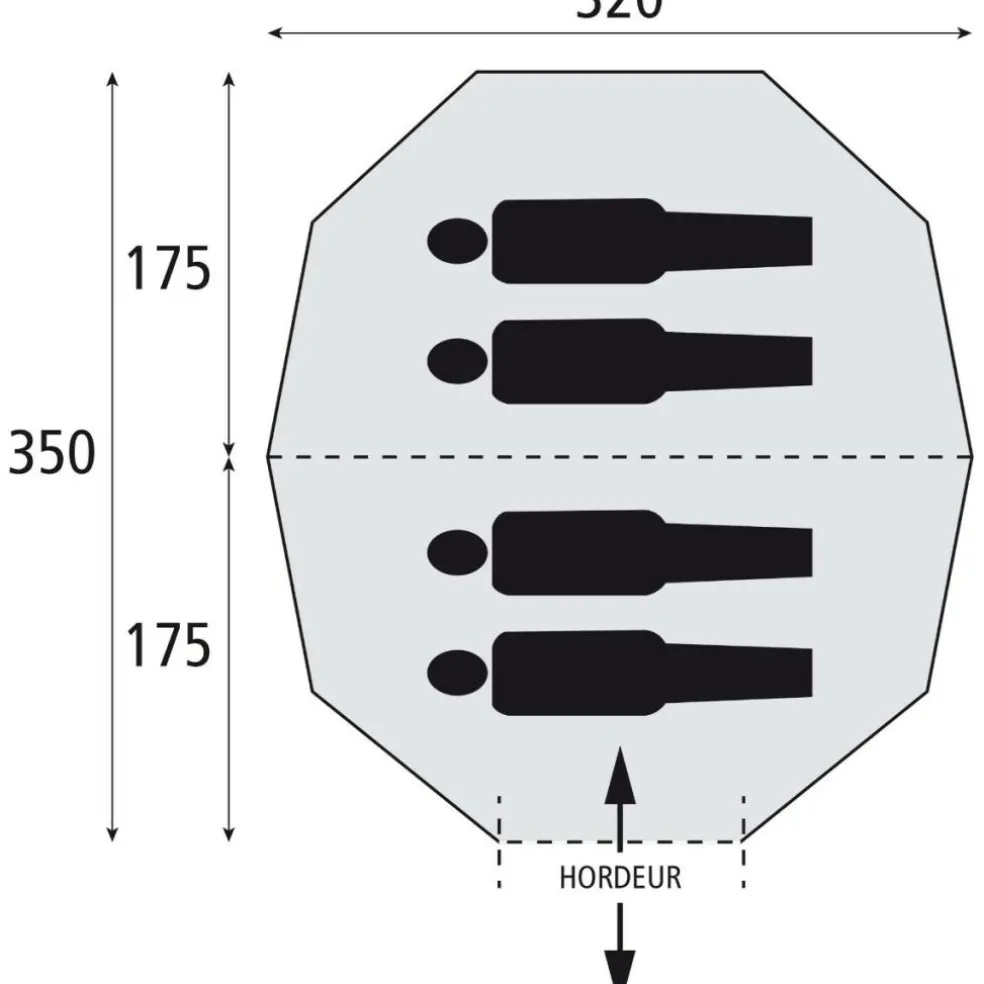 De Taiga 320 RSTC heeft één royale ruimte die u met de meegeleverde scheidingswand naar wens in twee zones kunt verdelen. Handig wanneer u bijvoorbeeld twee slaapgedeeltes wilt maken of een duidelijke scheiding tussen slapen en spullen zoekt. Rondom blijft voldoende plek voor tassen en schoenen, terwijl de centrale stok logisch in het midden staat en daardoor weinig bruikbare ruimte wegneemt. De grote ingang met gaas en het doorlopende ventilatiesysteem maken de tent comfortabel bij zowel koel als warm weer.