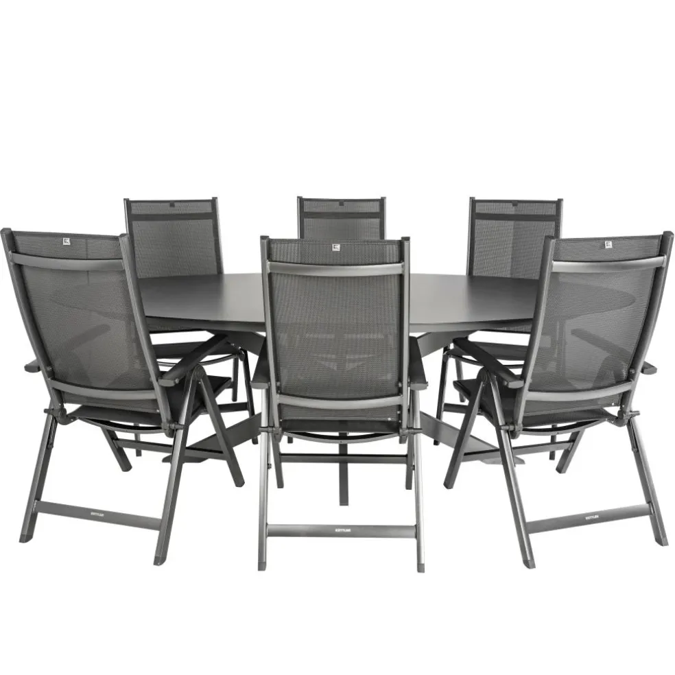 De Bardani Varesse Easy 6 tuinset maakt buiten zitten zo makkelijk en gezellig als het maar kan. De royale tafel van 240 x 108 centimeter biedt voldoende ruimte voor alles wat u nodig heeft: van een lekkere lunch tot een gezellige avond borrelen. De antracietkleur geeft de set een moderne, strakke look die perfect past in elke tuin of op elk terras. Met de zes comfortabele stoelen die uitnodigen om uren te relaxen, is dit de ideale set voor wie houdt van eenvoud zonder concessies te doen aan stijl.