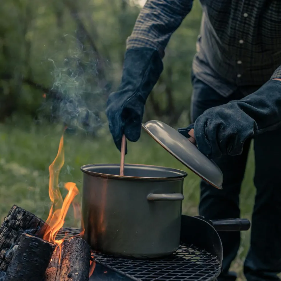 De Barebones soeppan heeft een elegant emaillen ontwerp en zijn handmatig afgewerkt met gebakken roestvrijstalen bekleding. Het materiaal maakt het mogelijk om deze pannen zowel binnen als buiten te gebruiken. Voor emaillen producten wordt handwas aanbevolen. De outdoor pannen kunnen zelfs boven een open vuur worden gebruikt.
