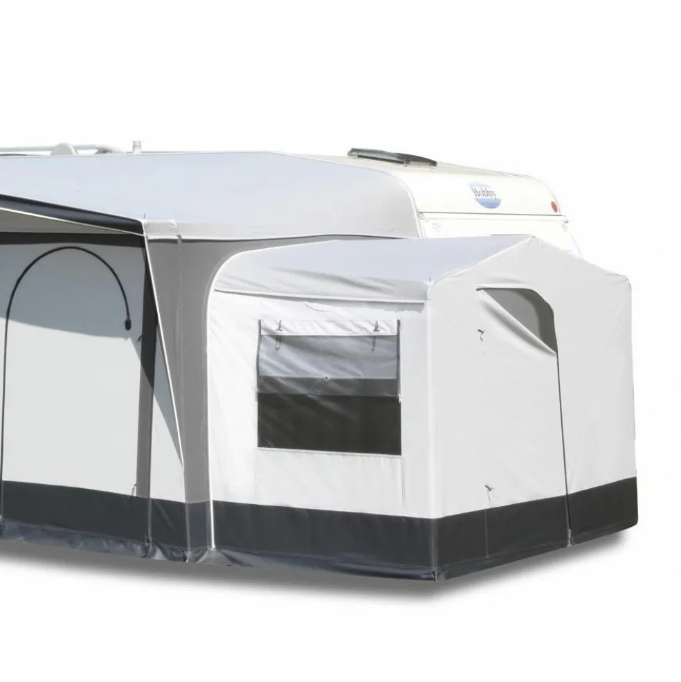 De uitbouw is te koppelen met een speciale ritsverbinding, waarmee de uitbouw stevig bevestigd is. De uitbouw kan ook worden gebruikt als ingang en voorportaal, maar komt tevens van pas als slaapcabine of extra bagageruimte. Het degelijke materiaal zorgt ervoor dat de uitbouw bestand is tegen weer en wind. Het PVC dak is voorzien van een coating om het onderhoud te minimaliseren en het doek robuuster te maken.