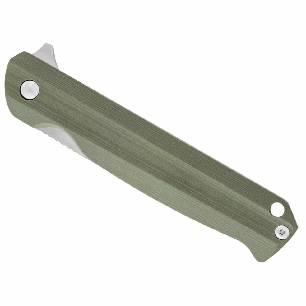 Dit Langford Green PE Clampack mes is voorzien van een strak gestroomlijnd EDC mes. De lemmet is met gemak te openen door middel van de flipper aan de achterzijde van het mes. De handgreep is uitgevoerd in G10 composiet materiaal wat zeer duurzaam en slijtvast is. De sterke linerlock zorgt ervoor dat het mes stevig in geopende stand kan blijven en dankzij de draagclip kan het mes met gemak overal mee naartoe.