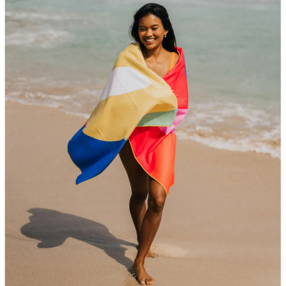 Dit Buvanha Paris 02 strandlaken heeft een vrolijk design en is heel compact. Het tasje is klein en hierdoor is het strandlaken perfect om mee te nemen op vakantie. Het strandlaken droogt snel, neemt 1 liter water op en blijft zandvrij.