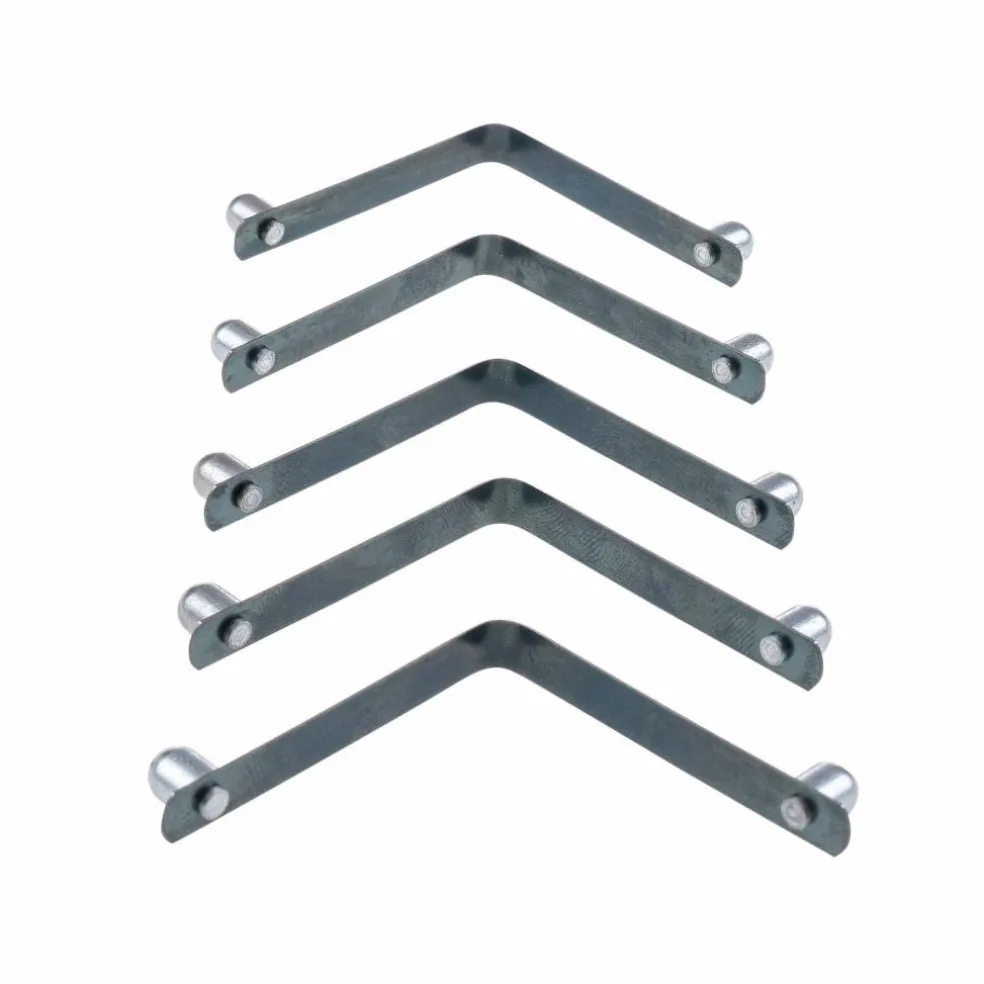 De Cabanon Borgveer met dubbele nok wordt gebruikt om twee tenstokken van de voortent die in elkaar schuiven op hun plaats te houden. Door de nok in te drukken, schuift u de stokken opnieuw in elkaar. Deze set bestaat uit vijf borgveren die ook te gebruiken zijn als vervangend onderdeel.