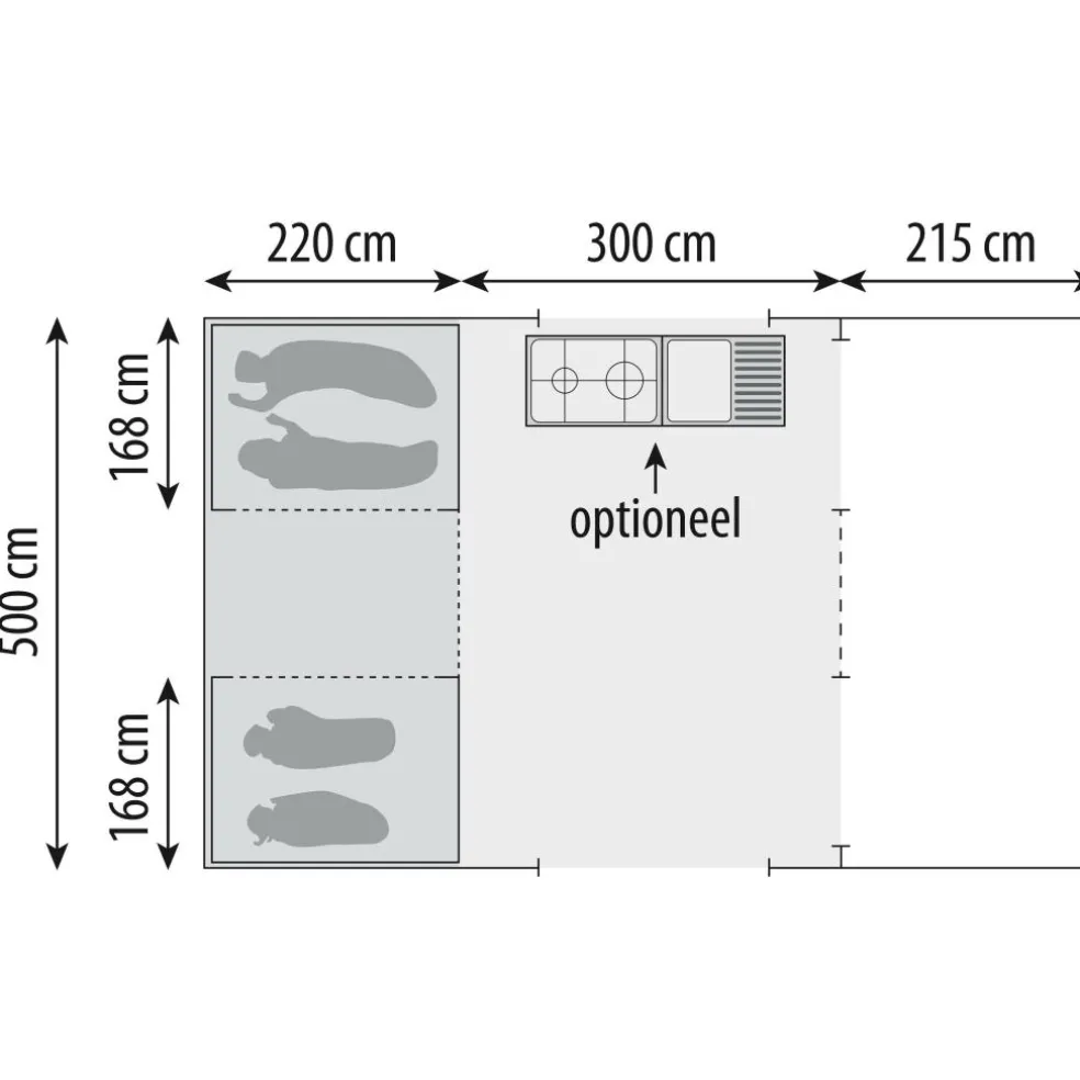De slaapcabines, die van horrengaas voorzien zijn, houden insecten buiten en zijn donker. De bedden zijn extra breed en hebben een matras van schuim. Ook is deze vouwwagen voorzien van een vernieuwde bermkeuken, die u in de voortent kunt plaatsen.