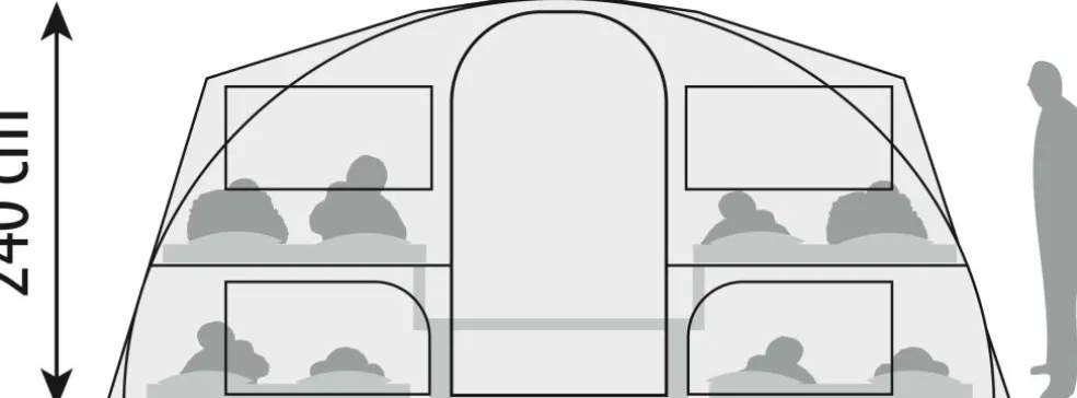 Deze ruime vouwwagen heeft donkere slaapcabines, die met horrengaas afgesloten kunnen worden om insecten buiten de houden. De brede bedden van 210 bij 168 hebben een matras van schuim en bieden veel slaapcomfort. Naast de wagentent kunt u ook heerlijk vertoeven in de voortent, die optioneel uitgebreid kan worden met een luifel. En lekker zelf koken is geen probleem dankzij de luxe bermkeuken.