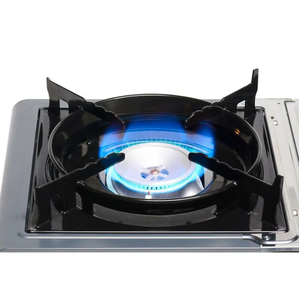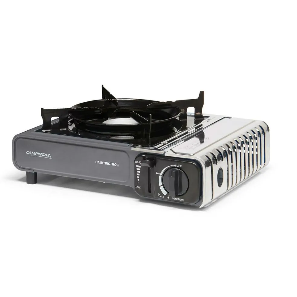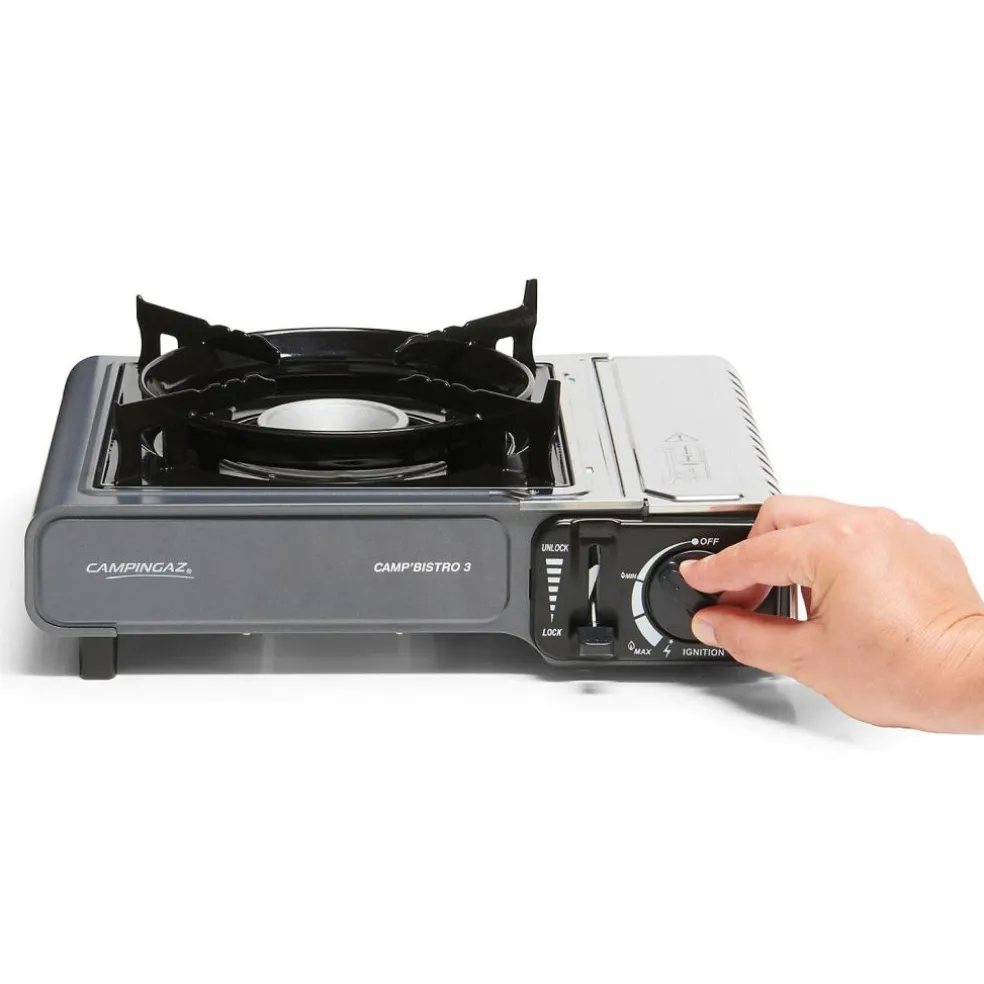 Koken gaat eenvoudig met het stevige Camp Bistro 3 kooktoestel van Campingaz. Dit 1-pits Campingaz kooktoestel is uitgerust met een verbeterde pandrager die zorgt voor een goede stabiliteit. Daarnaast is de cartouchehouder, voor extra veiligheid, uitgevoerd in roestvrijstaal en beschikt dit gaskooktoestel over de mogelijkheid om de gastoevoer eenvoudig te onderbreken. Het vermogen kan helemaal naar eigen wens ingesteld worden met behulp van de draaiknop. De geïntegreerde piëzo ontsteking zorgt ervoor dat de brander eenvoudig en snel aan te steken is. Rond de brander van dit kooktoestel zit een speciale ring die voorkomt dat de brander door de wind wordt uitgeblazen. Vervoeren en opbergen kan in de meegeleverde kunststof draagtas.