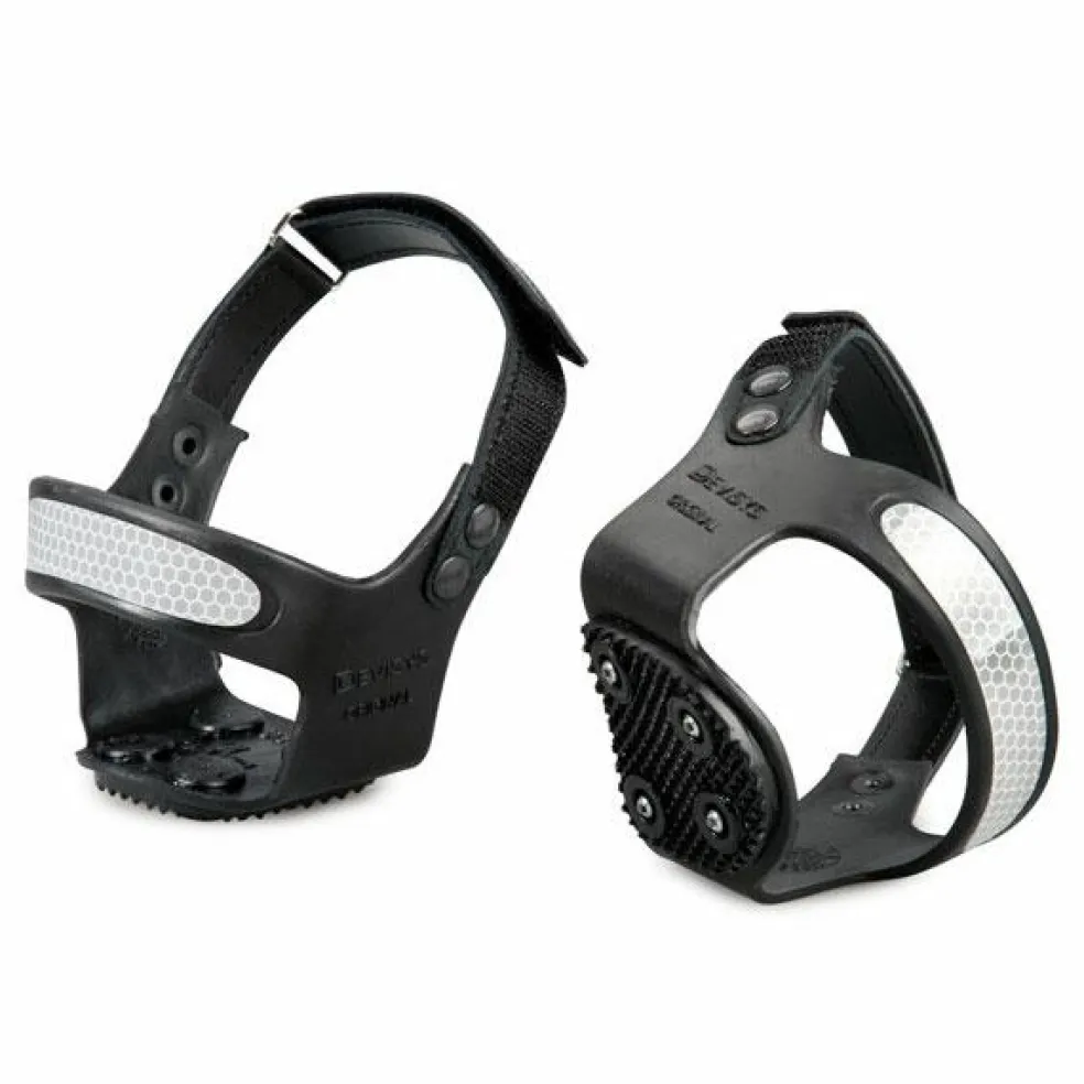 De spikes in de Devisys antislip hak worden geproduceerd door het Finse TIKKA, bekend van o.a. Continental winterbanden. De hoge kwaliteit garandeert dat de pinnen niet snel afslijten en dat grip langdurig wordt gewaarborgd. De pinnen zijn in het kunststof gegoten. Rondom de spikes is de hak voorzien van een kunststof antislip profiel voor extra grip. Doordat de pinnen perfect zijn gepositioneerd bijten ze zich effectief vast in het ijs.