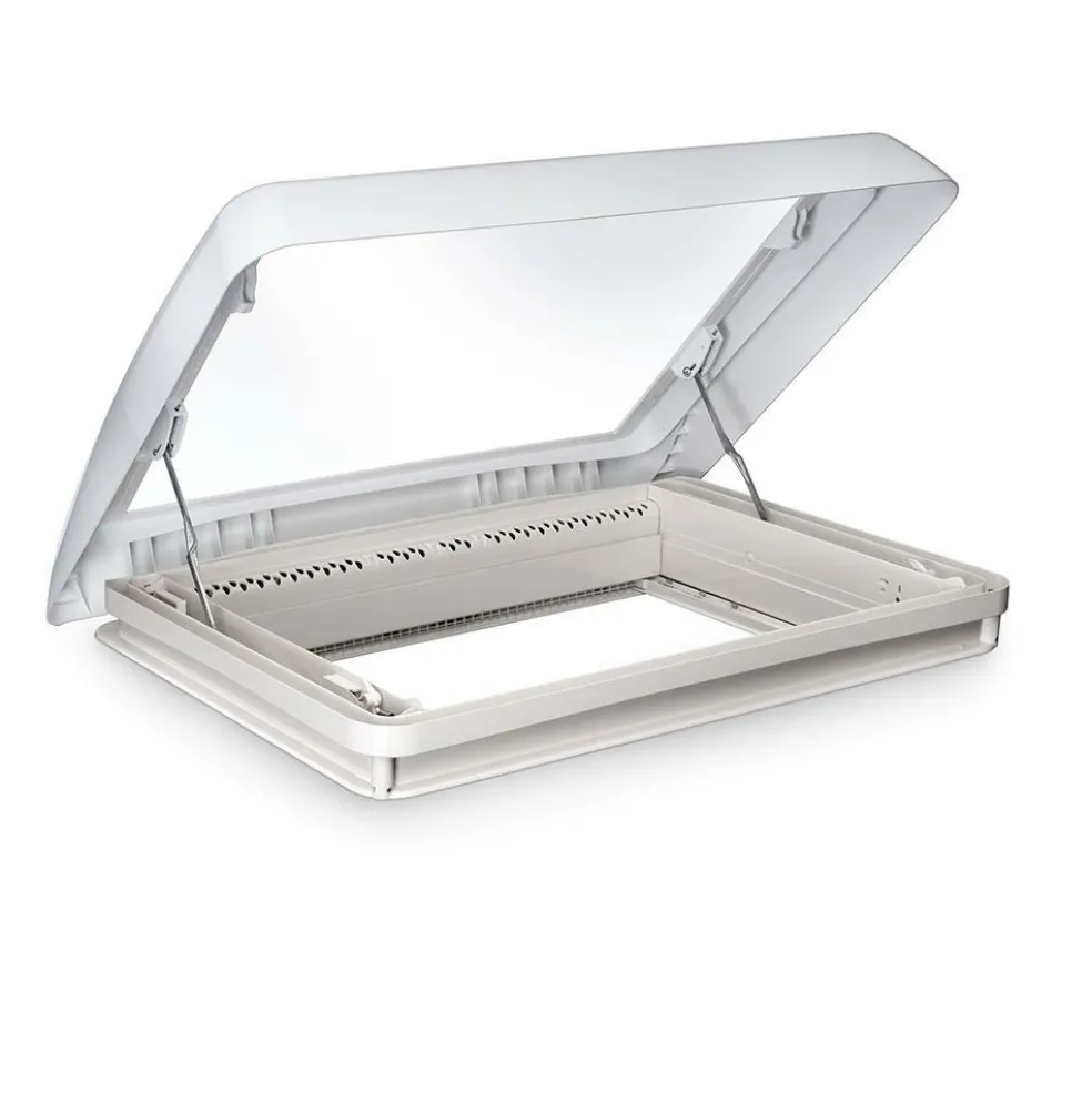 Dit Midi Heki dakluik is voorzien van een afsluitend rubber zodat er geen permanente ventilatie – en ook geen tocht – is als het luik gesloten is. Een dakluik zonder ventilatie kan prettig zijn wanneer het luik boven het slaapgedeelte geplaatst wordt, dit type dakluik wordt dan ook het meest toegepast in campers.