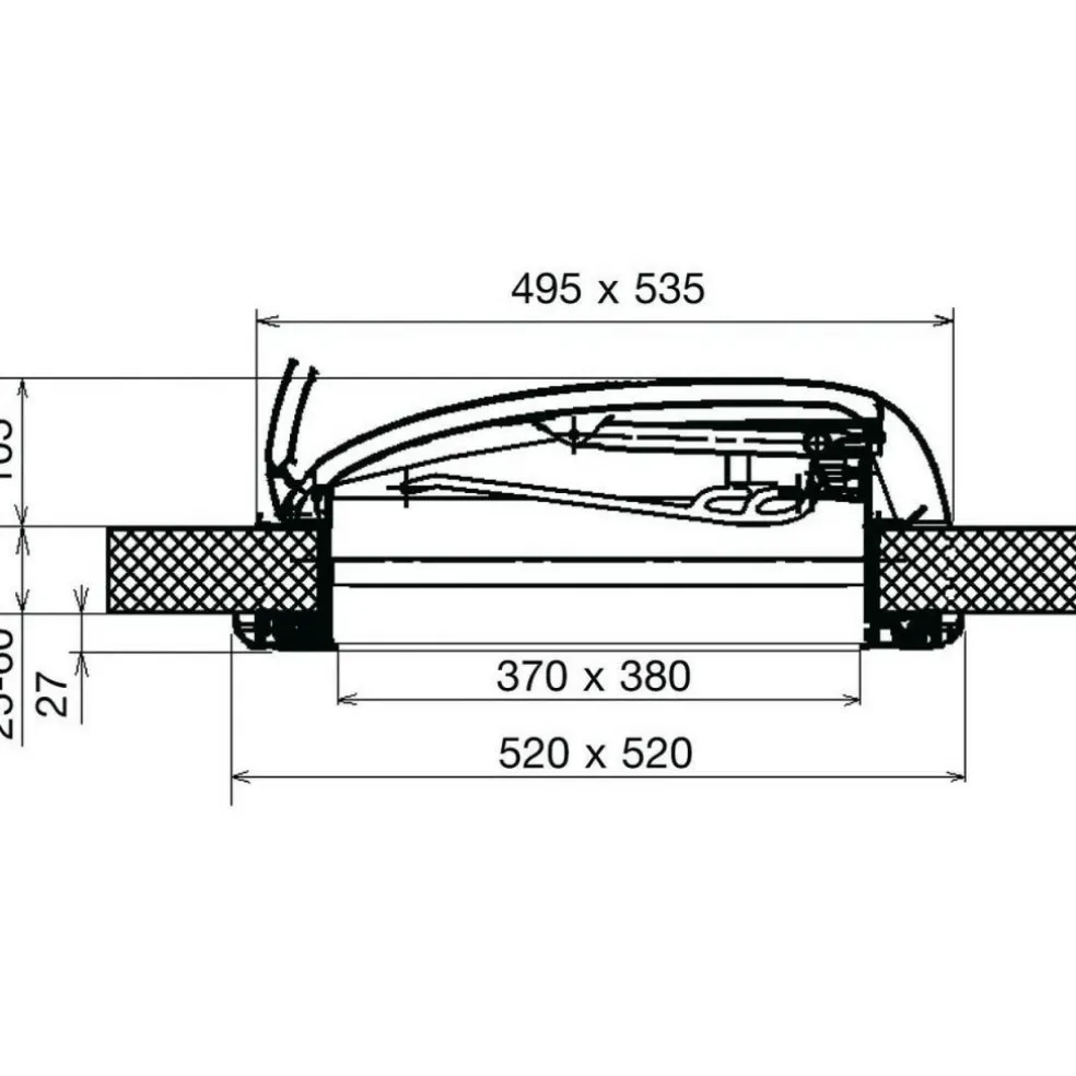 Voor het verlijmen, afdichten en monteren van dit dakluik adviseren wij de Dekalin Dekaseal 1512 kit. Monteer het dakluik met de scharnieren in de rijrichting. Sluit het dakluik altijd voordat u gaat rijden.