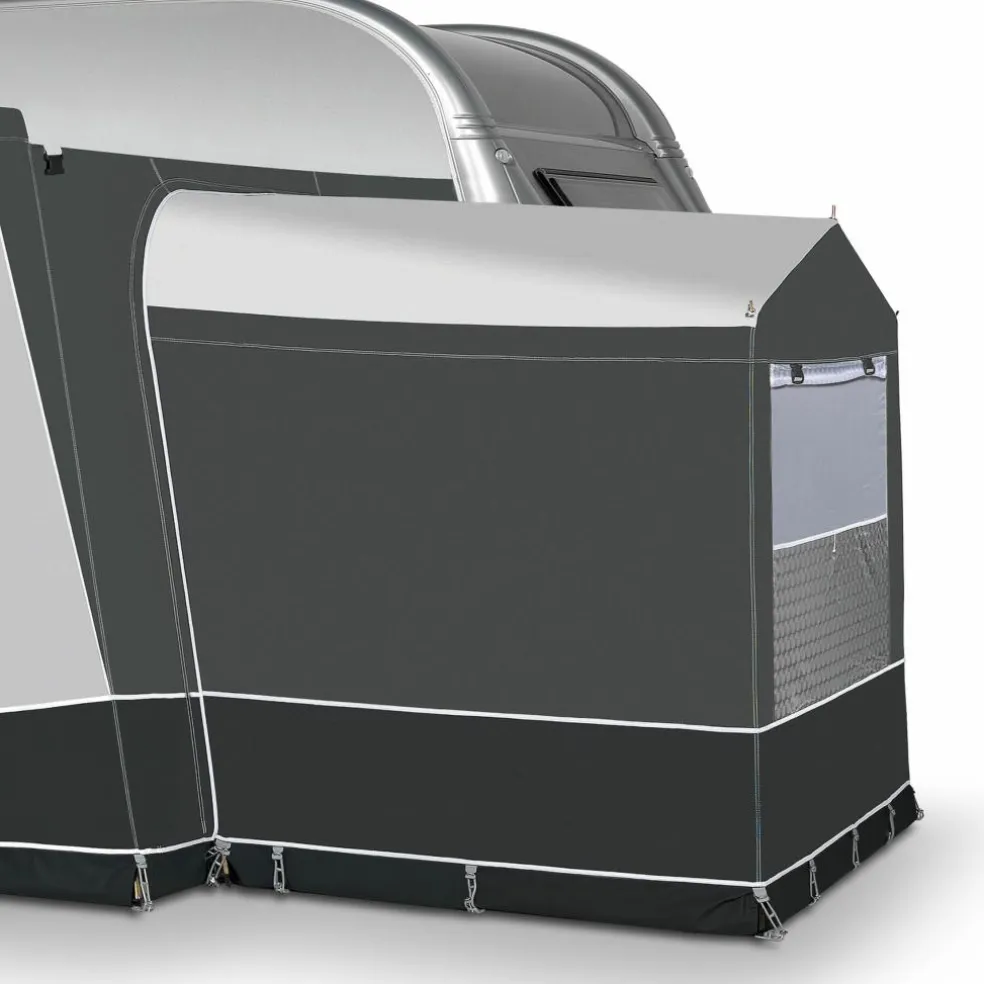 De Doréma President Royal Standaard uitbouw is geschikt voor de volgende voortenten van Doréma: President en Royal. Deze Doréma uitbouw is gemaakt van weerbestendig All Season materiaal, dat waterdicht, ademend en eenvoudig te reinigen is. Daarnaast is de uitbouw voorzien van een raamvenster. Deze uitbouw is optioneel uit te breiden met een 2-persoons slaapcabine.