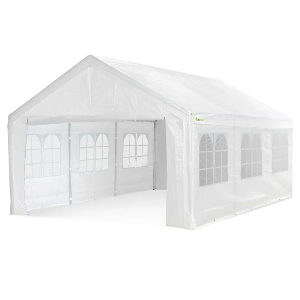 Let op: deze tent is bedoeld voor feestjes en tijdelijk gebruik. Laat de tent niet langdurig buiten staan en vermijd gebruik bij harde wind of zware neerslag. Zo behoudt u de levensduur en staat de constructie veilig.