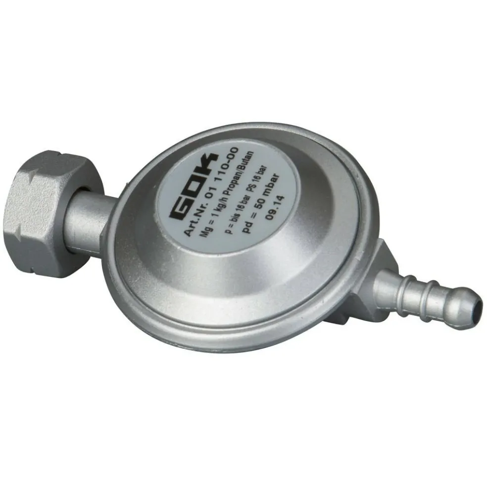 De aansluiting is een slangpilaar en daar kunt u de gasslang direct opdrukken. Sinds 2002 is een Europese norm van kracht waarin afgesproken is dat 30 mbar voor gasinstallaties in voertuigen geldt. Gasinstallaties die daarvoor gemaakt zijn, kunnen zowel 30 als 50 mbar zijn. De Duitse fabrikant GOK is gespecialiseerd in de vervaardiging van drukregelaars.