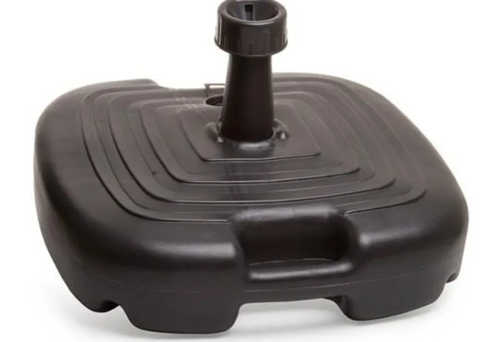 De kunststof parasolvoet antraciet heeft een inhoud van 17 liter en kan worden gevuld met water of zand. Deze voet kan worden gebruikt bij parasols met een maximale diameter van 2 meter en een stok van 30 millimeter in diameter.