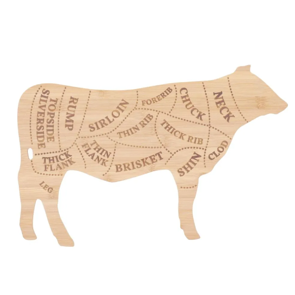 De Esschert Design Koe snijplank is gemaakt van stevig bamboe en is een leuke plank om uw eten op te bereiden of presenteren. Deze snijplank van Esschert Design heeft namelijk de vorm van een koe. Op de plank zijn de verschillende onderdelen van een koe aangegeven.