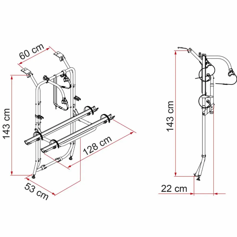 De Fiamma Carry-Bike fietsendrager voor de Opel Vivaro, Renault Trafic en Fiat Talento en is geschikt voor op de achterklep en met een dakhoogte van H1. Het fietsenrek wordt geleverd met twee wielgoten. Een derde en vierde zijn als optie mogelijk.