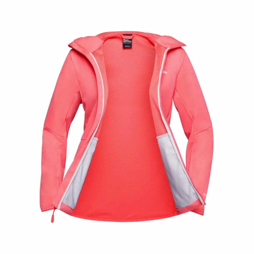 Deze Jack Wolfskin Feldberg softshell jas voor dames is gemaakt van ademend, winddicht en waterafstotend TEXASHIELD PRO SINGLE JERSEY materiaal. Dit Jack Wolfskin jack heeft twee heupzakken met ritsen en een vaste capuchon.