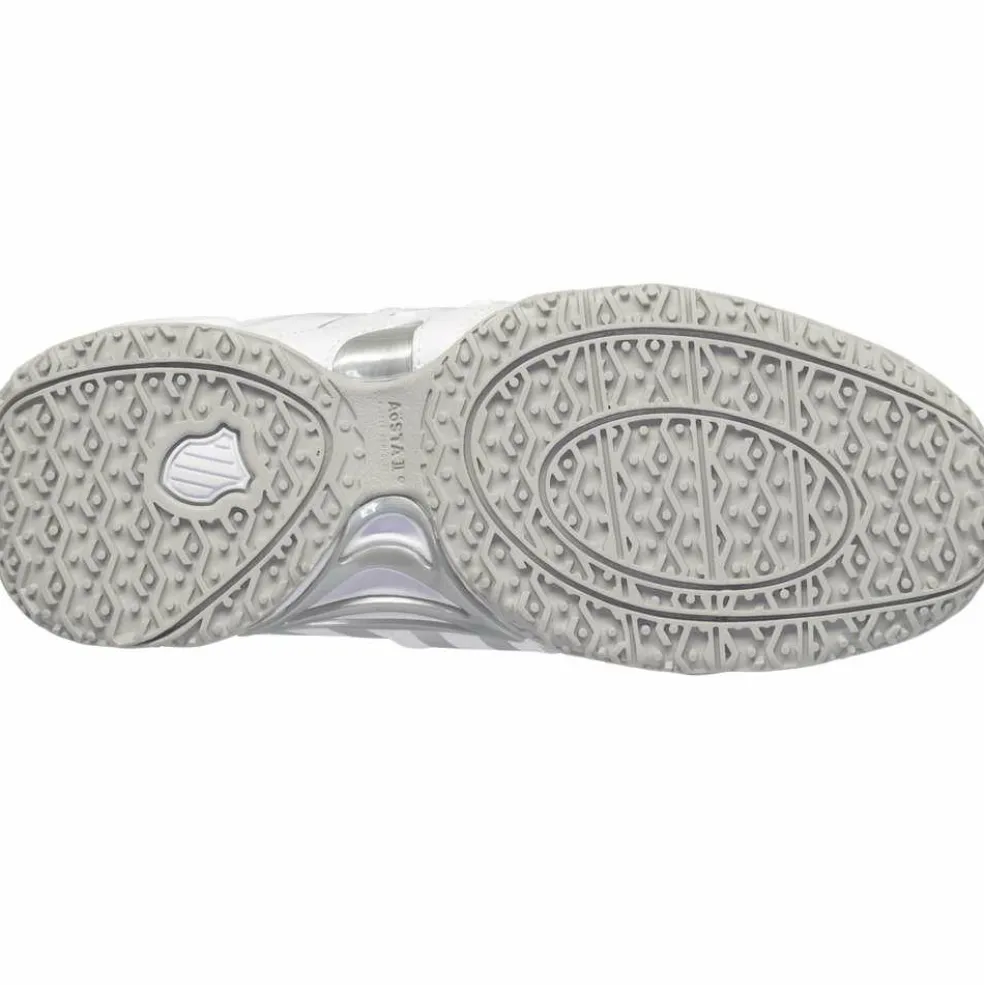 De K-Swiss Receiver V Omni tennisschoenen voor dames zijn voorzien van een strak design wat tijdloos is. De dempende zool in combinatie met de ademende bovenkant zorgt voor een aangenaam draagcomfort. Deze tennisschoenen zullen uw spel naar een hoger niveau tillen.