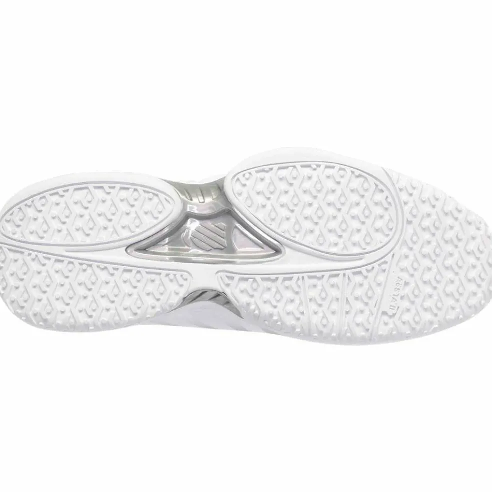 De K-Swiss Receiver V Omni tennisschoenen zijn geoptimaliseerd voor spelers met een aanvallende en agressieve speelstijl. De speciale zool zal de schokken op correcte wijze opvangen en tegelijkertijd voor stabiliteit zorgen. De bovenkant van de schoen heeft een ademende werking.