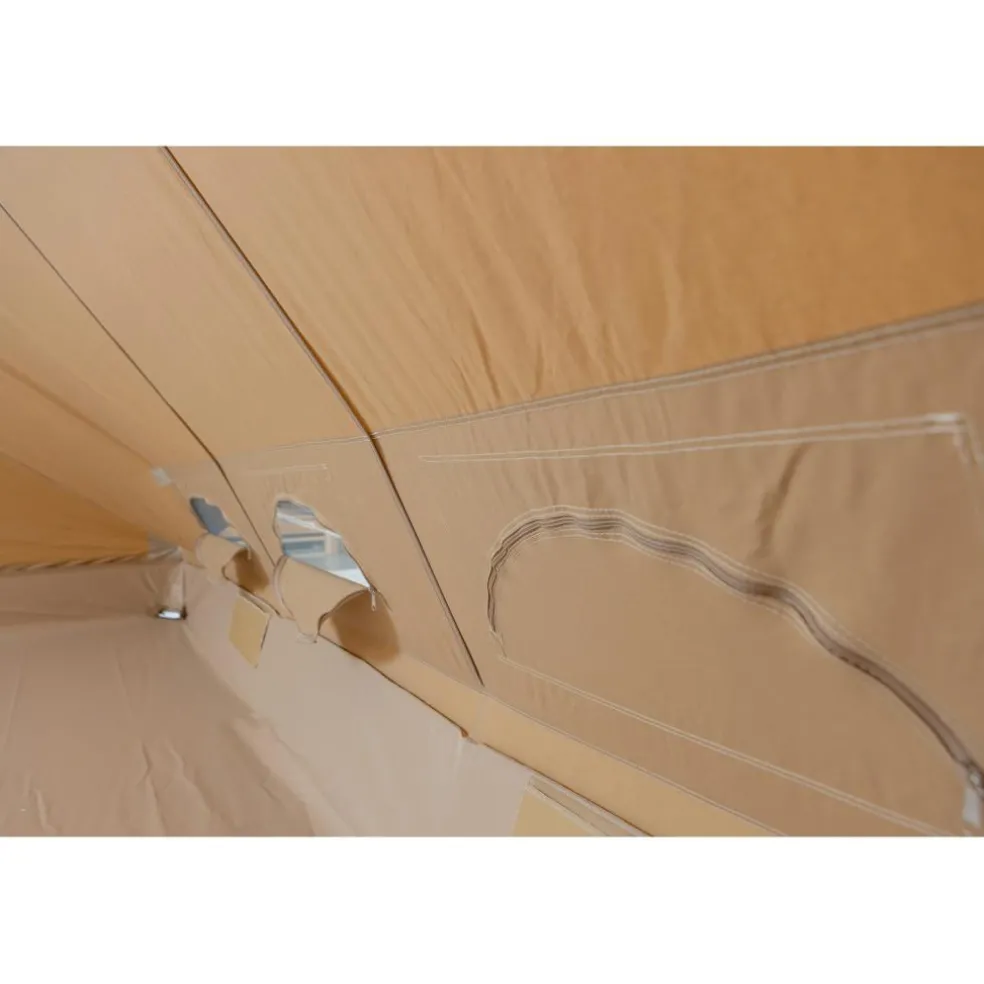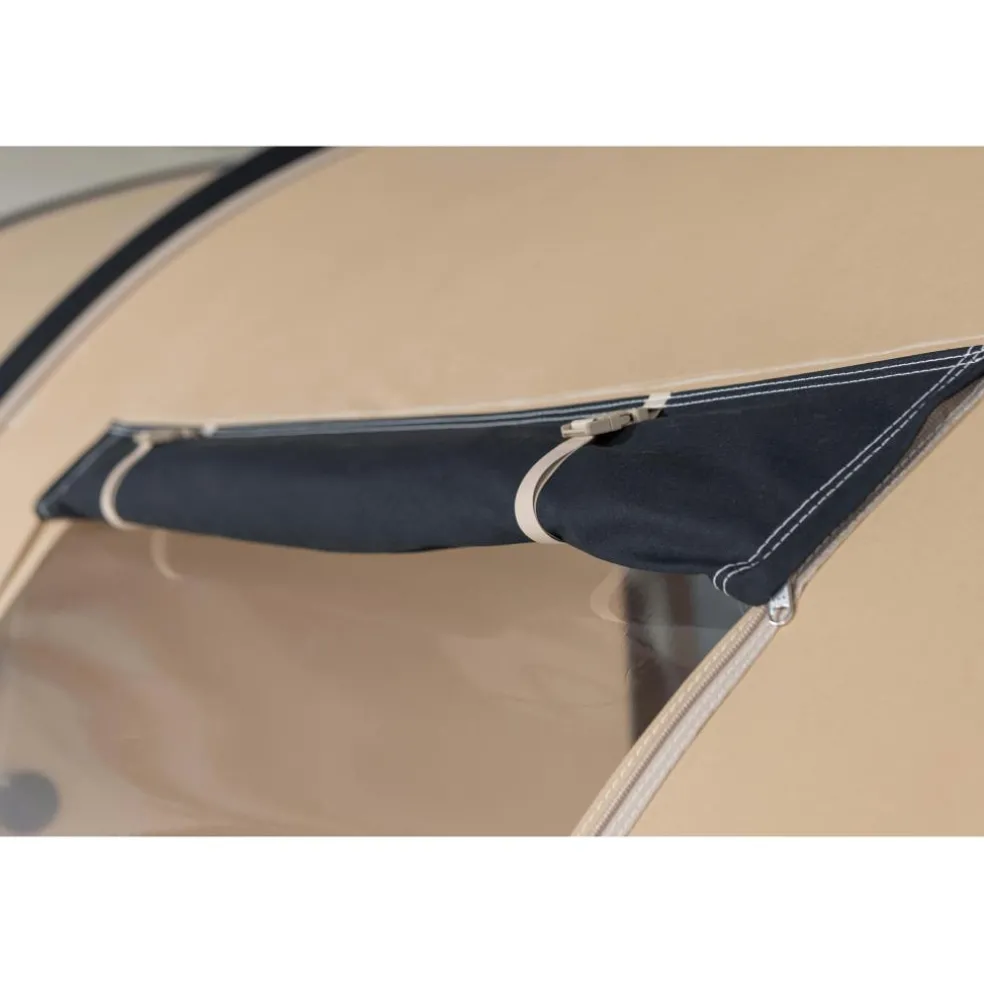 Het buitendoek bestaat uit 310 g/m² katoen, waardoor de tent natuurlijk ademt en condensvorming beperkt blijft. Dat voelt frisser aan bij warm weer en helpt juist bij wisselvallig weer om het binnenklimaat stabiel te houden. Het vaste bisonyl grondzeil sluit kuipvormig aan op de wanden, zodat spatwater, vuil en ongedierte buiten blijven en u de leefruimte eenvoudig schoonhoudt. De aluminium tentstokken combineren stijfheid met relatief laag gewicht, wat niet alleen voor stormvaste booglijnen zorgt maar ook het opzetten lichter maakt.