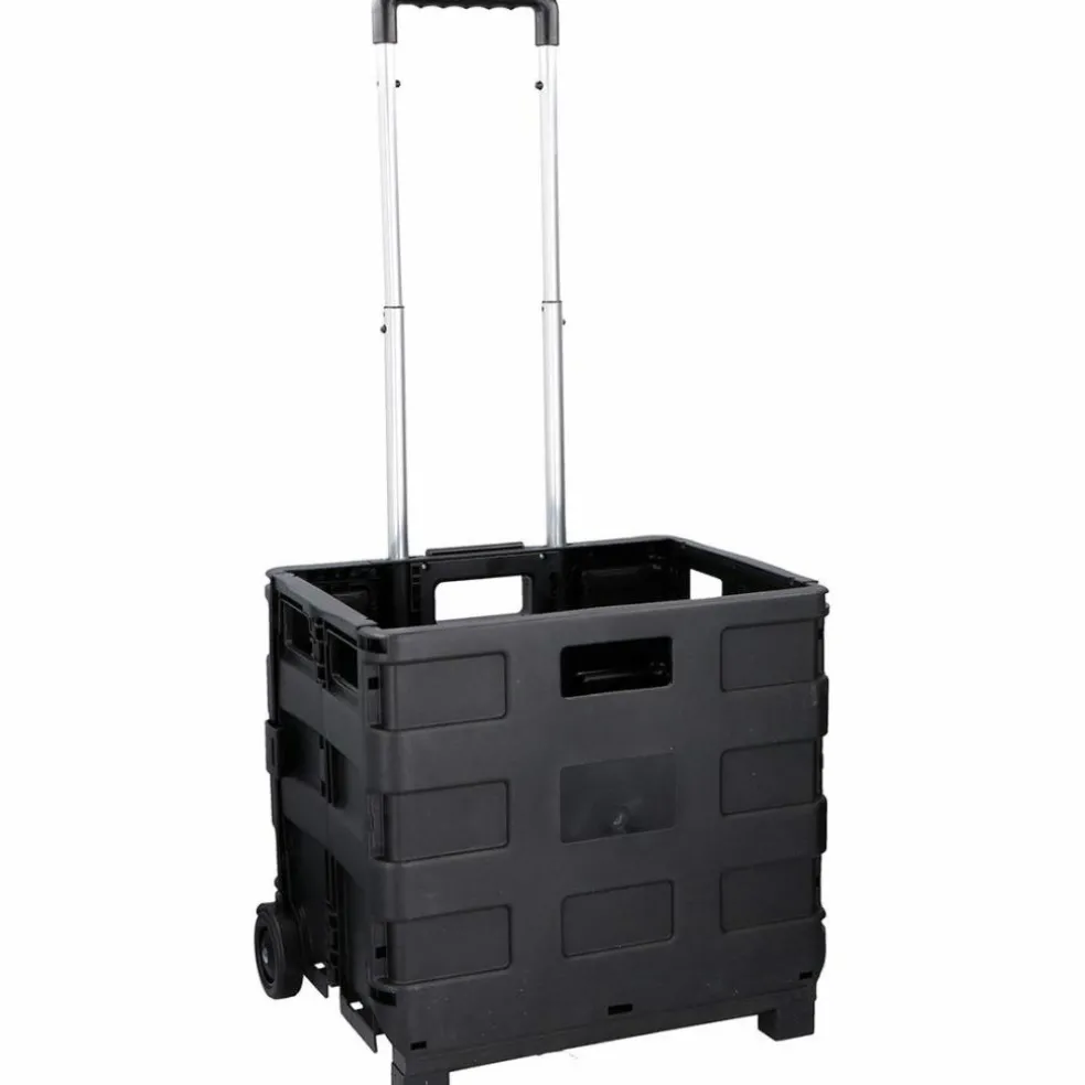 De Kinzo Opvouwbare krat met trolley is ideaal om zware boodschappen of spullen in te vervoeren. De krat is voorzien van twee rubberen wielen en een uittrekbare handgreep waardoor u de krat niet hoeft te dragen. Deze krat is eenvoudig in en uit te klappen en met de sluitingen vast te zetten. Het maximale laadgewicht is 25 kg. Het handvat is uit te schuiven tot een hoogte van 83,5 cm.