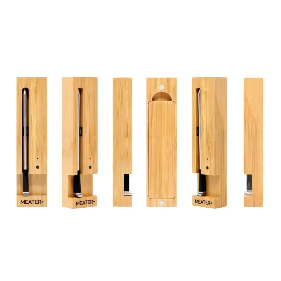 Bij de Meater Plus draadloze thermometer hoeft u niet dicht bij de barbecue te blijven dankzij de meegeleverde signaal versterker. De signaal versterker zorgt voor een bereik van +/- 50 meter. Zowel de thermometer als de versterker werken via Bluetooth. Het signaal kan met behulp van een extra telefoon zelfs versterkt worden zodat u het vlees via internet overal ter wereld in de gaten kunt houden. U kunt het vlees in de gaten houden met behulp van een app op een mobiel apparaat. Het grote voordeel van deze thermometer is dat deze volledig draadloos én waterdicht is. De sensor is gecalibreerd tot op +/- 0,5 graden Celcius nauwkeurig. De thermometer is voorzien van 2 sensoren. Één sensor meet de kern van uw gerecht terwijl de tweede sensor de omgevingstemperatuur meet.