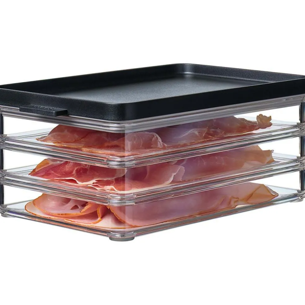 De Mepal Omnia 3-laags vleeswarendoos in de kleur black is de perfecte manier om uw vleeswaren heerlijk vers op te bergen. Deze Mepal vleeswarendoos bestaat uit drie lagen die goed op elkaar aansluiten en de deksel houdt het geheel aroma- en luchtdicht. De vershouddoos is zeer gemakkelijk te stapelen, ideaal wanneer u weinig ruimte heeft in uw koelkast.