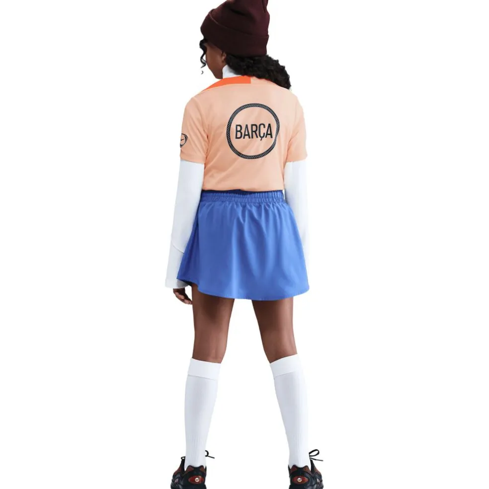 Het Nike FC Barcelona Strike derde shirt zorgt ervoor dat kinderen zich fris en zelfverzekerd voelen, dankzij de materialen die transpiratievocht afvoeren en snel drogen.