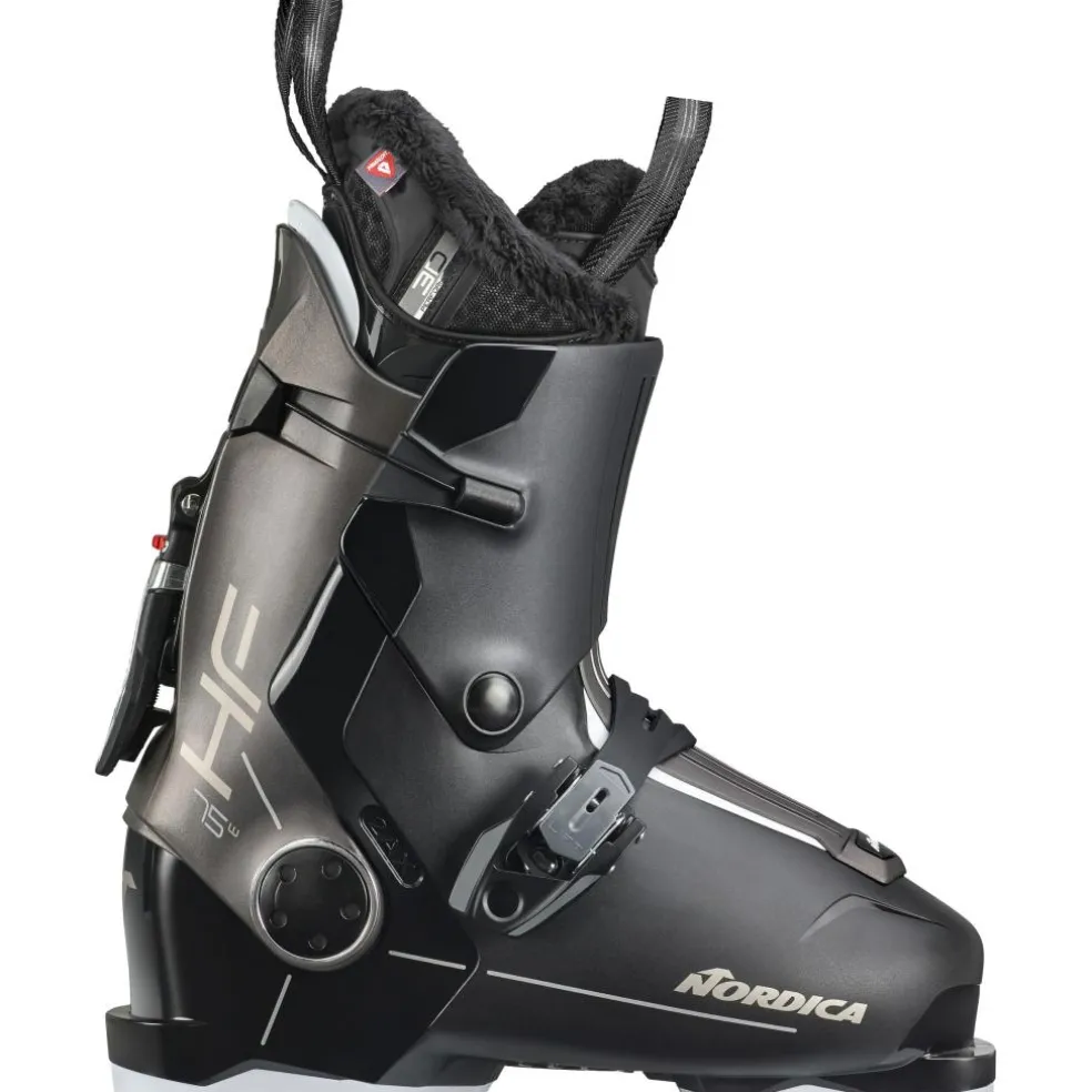 Met de Nordica HF 75 W skischoenen voor dames kunt u zorgeloos skiën. Deze skischoenen van Nordica zijn voorzien van alle comfort en gemakken. De Primaloft voering is waterafstotend en isolerend. Met de Easy Entry Shell stapt u zeer eenvoudig en handsfree in en uit de schoenen. Verder hebben deze skischoenen een Double Axis Pivot voor perfecte afsluiting, waardoor u meer stabiliteit en controle heeft op de piste. Tot slot hebben deze schoenen Alpine High Traction double density PU zolen, infrarode technologie en Instep Volume Control.