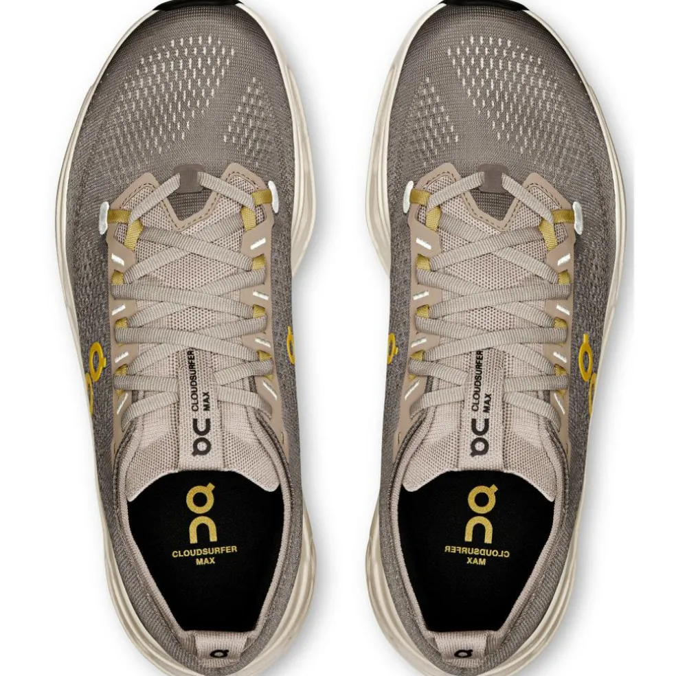 De On Cloudsurfer Max hardloopschoenen zijn ontworpen met een mesh bovenwerk, waardoor u tijdens het hardlopen een aangenaam fris gevoel en ventilatie ervaart. De stevige tussenzolen absorberen schokken en bieden demping, waardoor uw stappen zachter aanvoelen en minder moeite kosten. Het rubber van de buitenzolen zorgt voor optimale grip, zodat u onbezorgd kunt genieten van uw run.