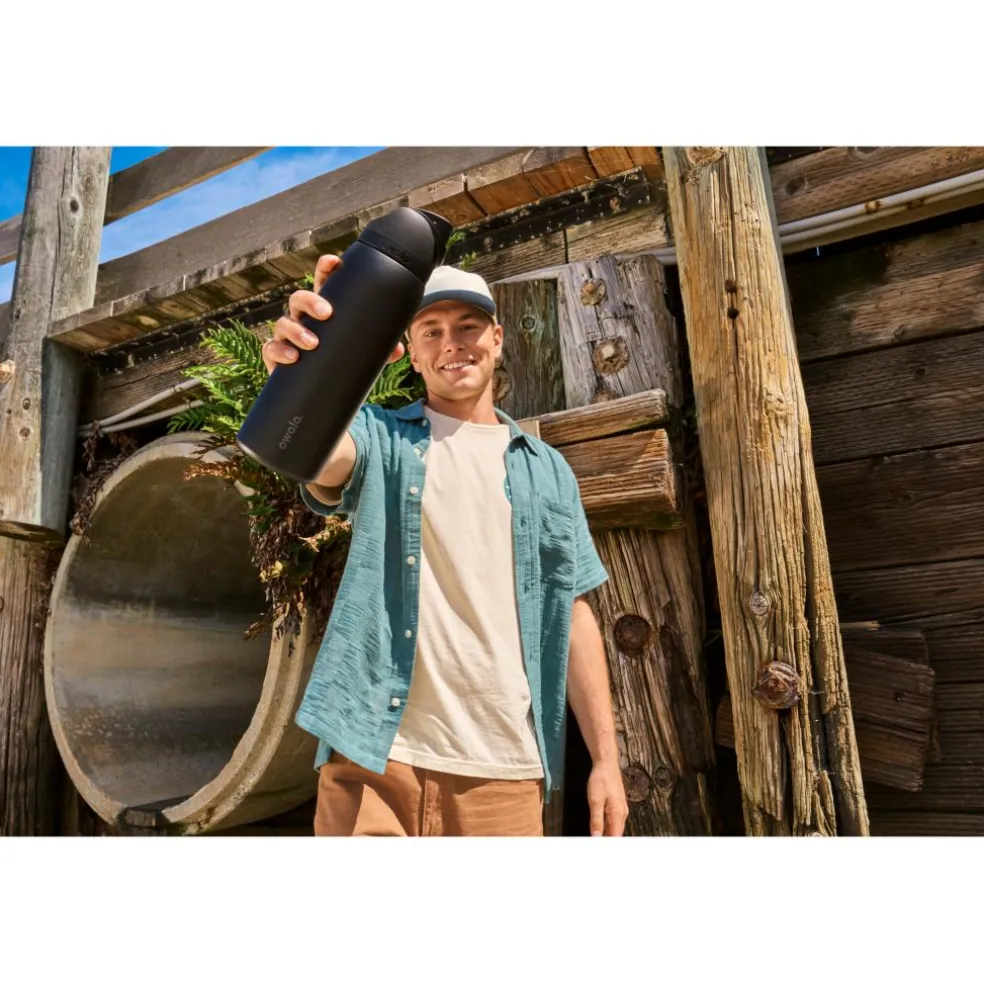 U kunt zelf bepalen hoe u uit de Owala FreeSip drinkfles 945 ml very very dark drinkt: kantelend via de brede opening of via het rietje. U neemt deze drinkfles van Owala overal makkelijk mee naartoe dankzij het handige handvat en opent de deksel met een druk op de knop. De deksel is ook weer makkelijk vast te klikken. De BPA-, Lood-, en Ftalaatvrije deksel is geschikt voor de vaatwasser en de roestvrij stalen beker is eenvoudig met de hand schoon te maken. De brede drinkopening is ook zeer geschikt om ijs in te doen. Bovendien houdt deze stijlvolle drinkfles uw water 24 uur lekker koel en is de fles lekvrij.