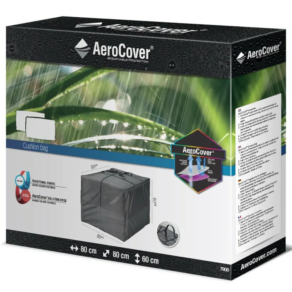 Deze AeroCover kussentas 80 x 80 x 60 is geschikt voor loungesetkussens en stoelkussens. De kussentas heeft een uitstekend ademend vermogen om uw tuinkussens optimaal te beschermen omdat alle hoezen en kussentassen zijn gemaakt van lichtgewicht, UV-bestendig ripstop polyester. Dit materiaal heeft een zeer goed ademend vermogen en worden condens en vocht direct naar buiten afgevoerd, zodat er geen schimmelvorming plaatsvindt.