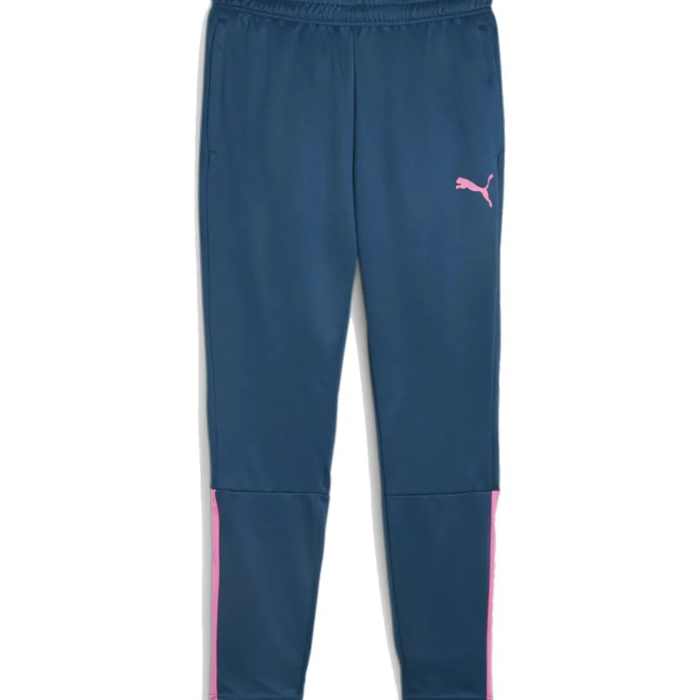 De Puma TeamLIGA trainingsbroek voor heren heeft zakken voor bijvoorbeeld sleutels of een telefoon. De elastische band zorgt voor een fijne pasvorm en het materiaal heeft sneldrogende eigenschappen.
