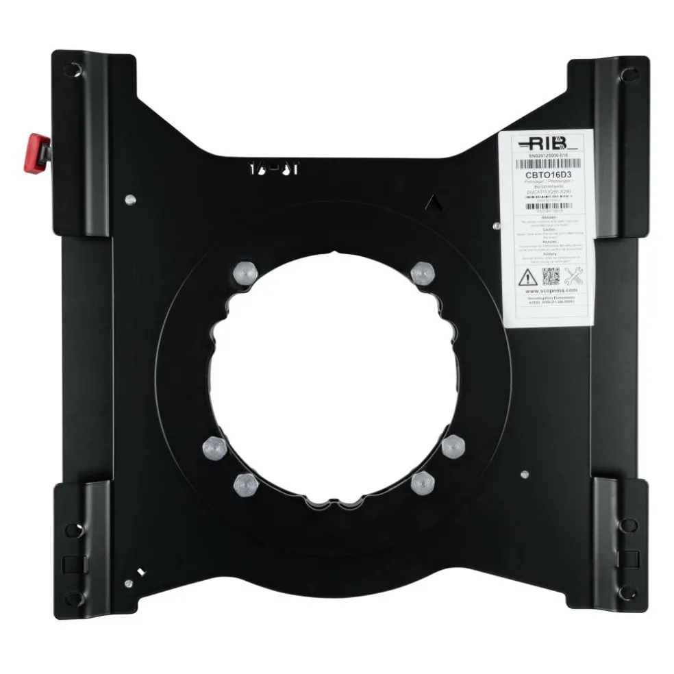 Het Scopema V3 draaiplateau is speciaal ontwikkeld voor de bijrijdersstoel van een Fiat Ducato, Peugeot Boxer of Citroën Jumper vanaf 2006. Door de rode hendel te gebruiken, kunt u moeiteloos de draaivoet ontgrendelen en de stoel naar binnen draaien. Voor optimale prestaties wordt aanbevolen de stoel leeg te draaien of minimaal te belasten. De stoel kan vrij worden gedraaid tot een hoek van maximaal 180° en vergrendelt automatisch bij terugplaatsing naar de rijpositie.