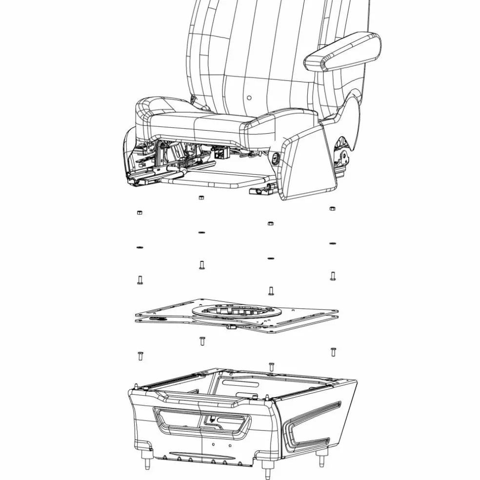 Het Scopema V3 draaiplateau is ontworpen voor de bestuurdersstoel van een Ford Transit vanaf 2014 of een Ford Transit Custom met een bouwjaar tussen 2013 en 2023. Met de rode hendel ontgrendelt u de draaivoet eenvoudig en draait u de stoel naar binnen. Voor optimale werking wordt geadviseerd de stoel leeg te draaien of met minimaal gewicht. De stoel kan vrij naar achteren worden gedraaid tot maximaal 180°, met automatische vergrendeling bij terugplaatsen naar de rijpositie.