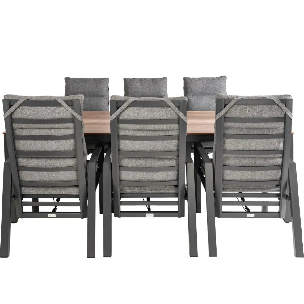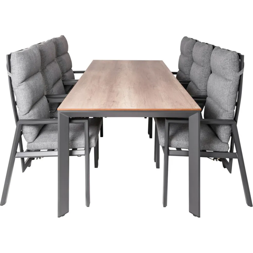 De SENS-Line Elena Impera 220 x 100 cm tuinset bestaat uit 6 comfortabele Impera stoelen en een ruime Elena tafel. Het houten design zorgt voor een natuurlijke touch, terwijl de stoelen een strak modern design hebben. Met deze tuinset komt u relaxed de dag door tijdens de zomermaanden.