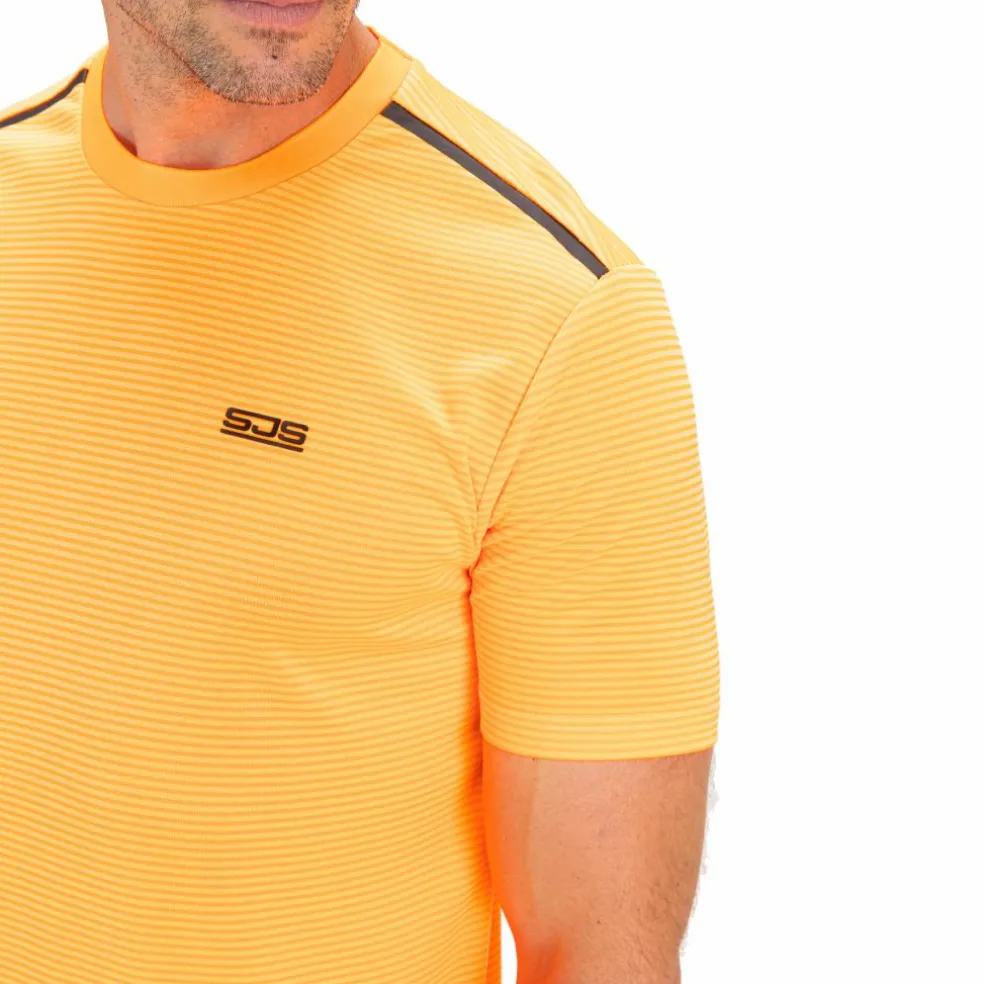 Dit opvallende Sjeng Sports Tex heren tennisshirt heeft subtiel uitgevoerde, horizontale strepen. Het shirt is uitgevoerd in soepel vallend materiaal.