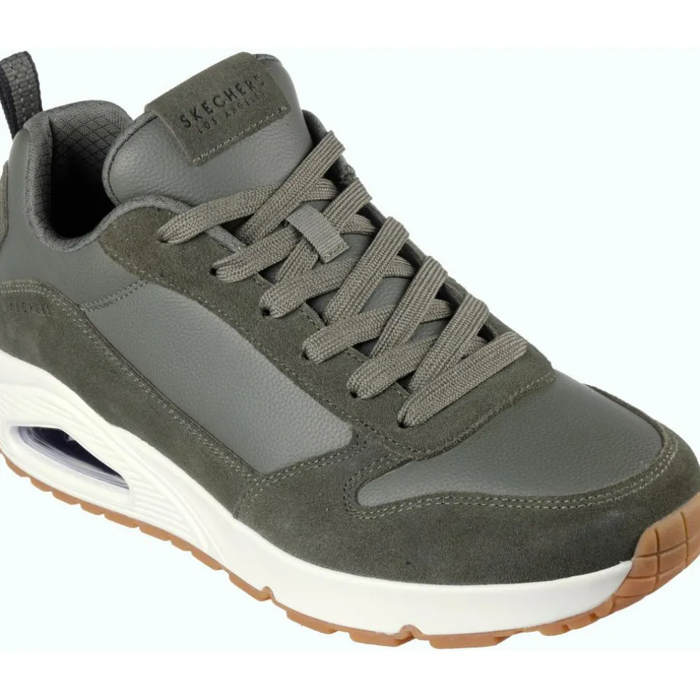 Deze sportieve UNO – Stacre schoenen van Skechers hebben een strak design die bij elke outfit past. De schoenen zorgen de hele dag voor een zacht dempend gevoel aan de voeten. Dit komt door de air-unit in de zool, maar ook dankzij de zachte Air-Cooled Memory Foam binnenzool. Daarnaast zorgt de buitenzool voor een goede grip.
